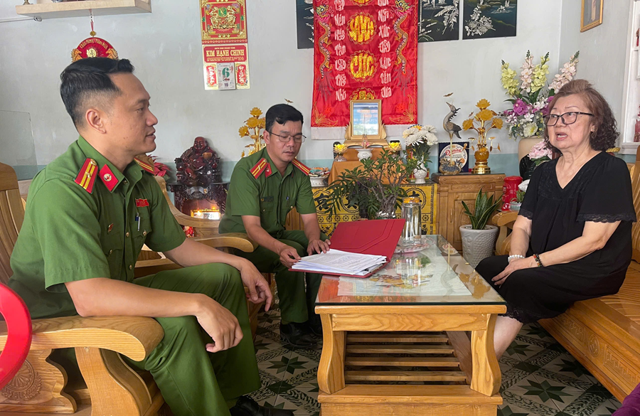 Công an xã Đạ Huoai tuyên truyền phương thức, thủ đoạn phạm tội cho các chủ tiệm vàng trên địa bàn