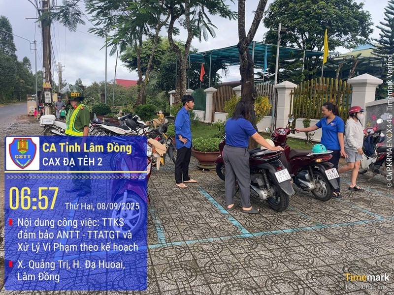 Theo quy luật, vào các khung giờ cao điểm đầu giờ học và cuối buổi tan học, phương tiện tham gia giao thông thường bị ảnh hưởng bởi phụ huynh đi đón con em và học sinh qua đường, đặc biệt trong ngày đầu tiên của năm học. Nắm rõ tình hình trên, ngày 08/9/2025, Công an xã Đạ Tẻh 2 đã phân công CBCS phối hợp cùng Đoàn Thanh niên xã có mặt tại cổng của 10 điểm trường vào các khung giờ cao điểm (6h30 đến 7h30; 10h30 đến 11h30; 16h00 đến 17h30) để hướng dẫn phụ huynh, học sinh di chuyển theo hàng lối, không tụ tập, đùa nghịch, gây cản trở giao thông; đồng thời nhắc nhở phụ huynh đậu, đỗ xe đúng nơi quy định, đội mũ bảo hiểm cho con em.