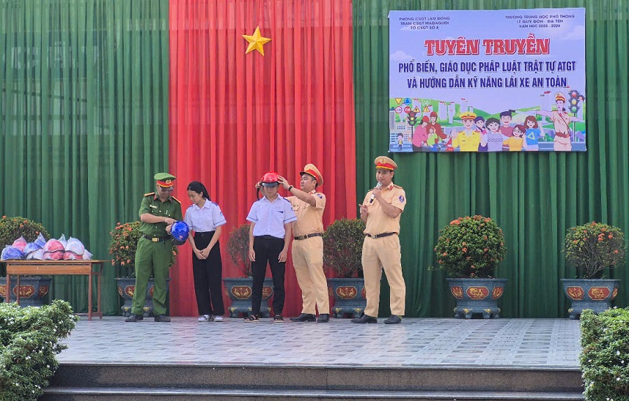 Tại buổi tuyên truyền, lực lượng chức năng đã thông tin tình hình vi phạm trật tự an toàn giao thông, phân tích các lỗi vi phạm phổ biến trong lứa tuổi học sinh; đồng thời tổ chức giao lưu, đặt câu hỏi giúp học sinh tiếp cận kiến thức một cách trực quan, dễ hiểu. Chương trình cũng trao tặng 15 mũ bảo hiểm và phát 150 tờ rơi tuyên truyền.