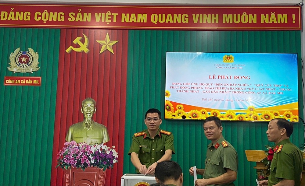 Song song với lễ phát động phong trào thi đua, Công an xã Đắk Mil đã tổ chức vận động cán bộ, chiến sĩ quyên góp ủng hộ quỹ “Đền ơn đáp nghĩa”, “Quỹ cứu trợ” và hỗ trợ đồng bào vùng thiên tai, bão lũ; phát huy truyền thống tốt đẹp “tương thân tương ái”, “lá lành đùm lá rách” của dân tộc Việt Nam. Hoạt động đã nhận được sự hưởng ứng tích cực, thể hiện tinh thần trách nhiệm của lực lượng Công an xã đối với cộng đồng.