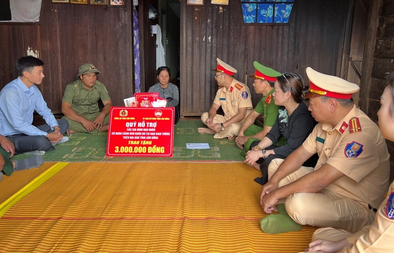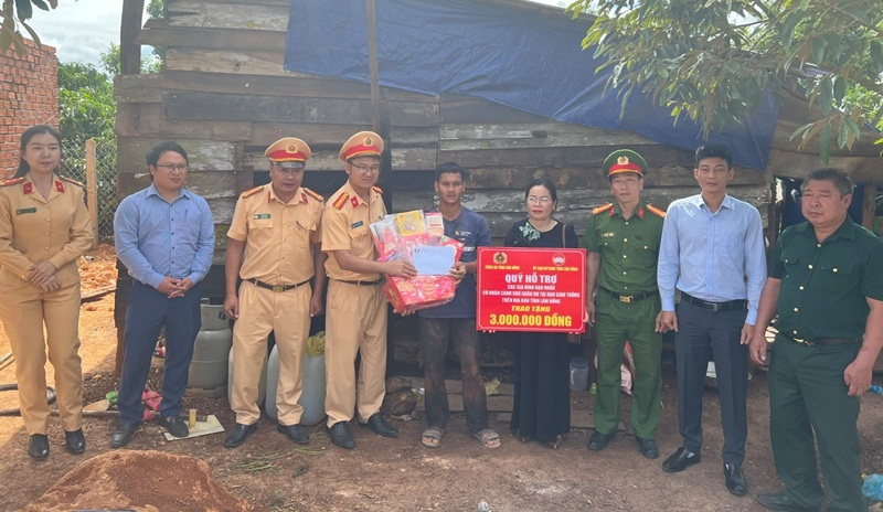 Sáng ngày 18/12/2025, Công an xã Đắk Mil, tỉnh Lâm Đồng đã phối hợp với Ủy ban Mặt trận Tổ quốc Việt Nam tỉnh, Phòng Cảnh sát giao thông Công an tỉnh Lâm Đồng, chính quyền địa phương xã Đắk Mil và Ủy ban Mặt trận Tổ quốc Việt Nam xã tổ chức đoàn công tác đến thăm hỏi, tặng quà cho 02 hộ gia đình có thân nhân bị tử vong do tai nạn giao thông trên địa bàn.