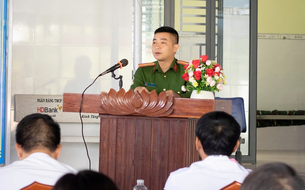 Đồng chí Thiếu tá Lê Thanh Sơn công bố Quyết định của Giám đốc Công an tỉnh