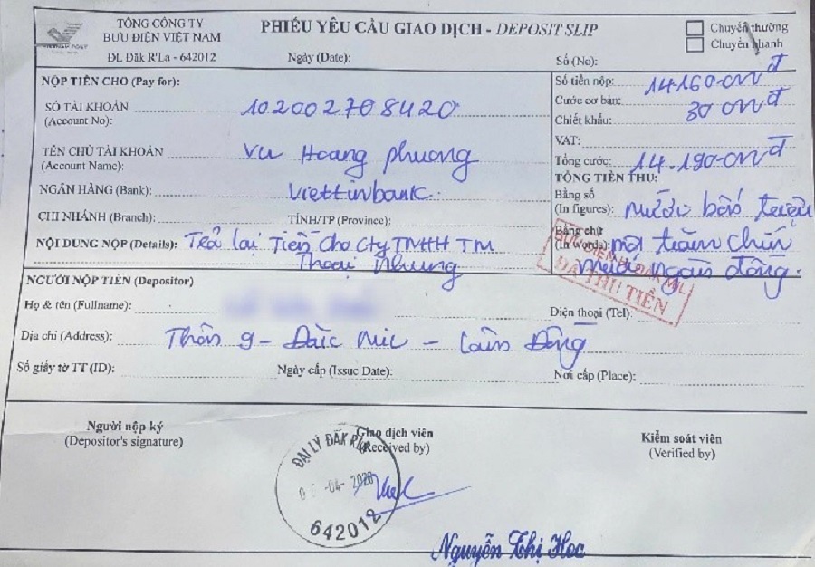 Qua xác minh, ông L.S.H. (SN 1974), trú tại thôn 9, xã Đắk Mil cho biết tài khoản ngân hàng ACB của mình nhận được số tiền 14.159.588 đồng do Công ty TNHH TM Thoại Nhung chuyển vào. Do không xác định được người chuyển, ông H. chưa thực hiện giao dịch đối với số tiền này. Nhận thấy đây là số tiền chuyển nhầm, Công an xã Đắk Mil đã tiến hành làm việc, giải thích quy định của pháp luật liên quan đến việc nhận tiền chuyển nhầm, đồng thời vận động ông H. phối hợp hoàn trả lại cho đơn vị chuyển tiền.