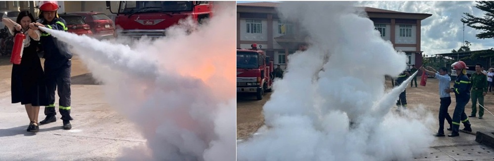 Người dân trực tiếp tham gia thực hành sử dụng bình chữa cháy dập tắt đám cháy