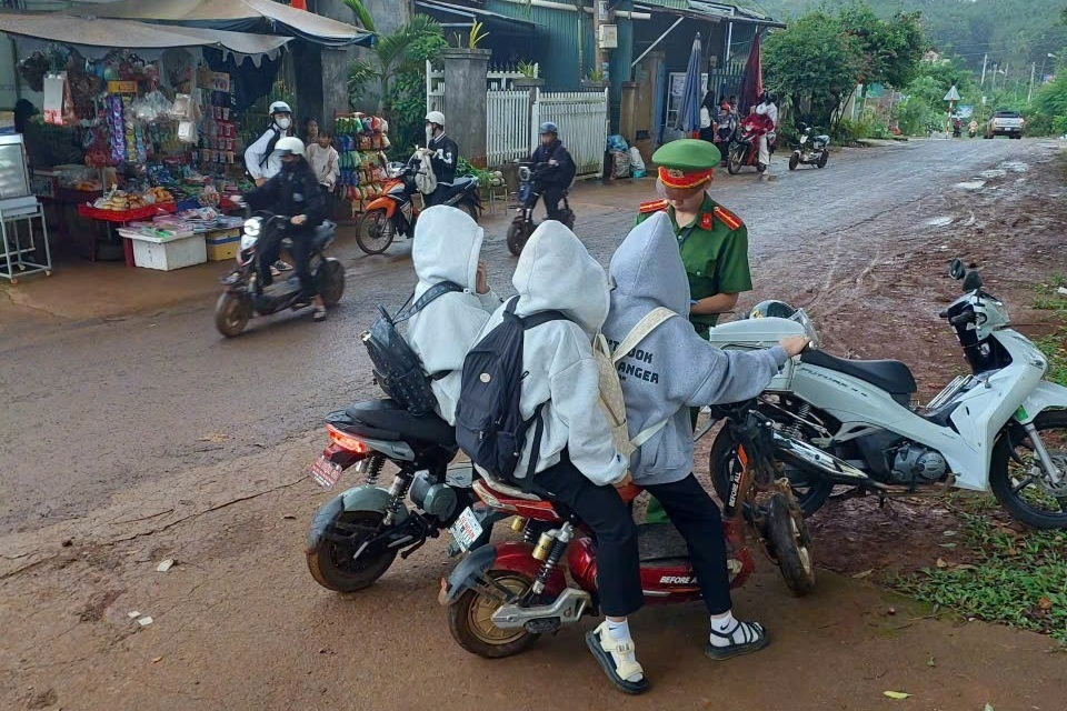 Công an xã Đắk Song tuyên truyền, nhắc nhở một số thanh thiếu niên vi phạm Luật Trật tự, an toàn giao thông
