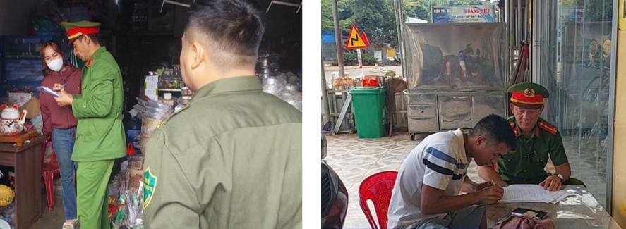 Song song với đó, lực lượng Công an xã cũng tổ chức tuyên truyền, vận động các hộ kinh doanh, tiểu thương và cá nhân ký cam kết không vi phạm trật tự công cộng; tự giác chấp hành và tháo dỡ các vật dụng vi phạm lấn chiếm lòng, lề đường.