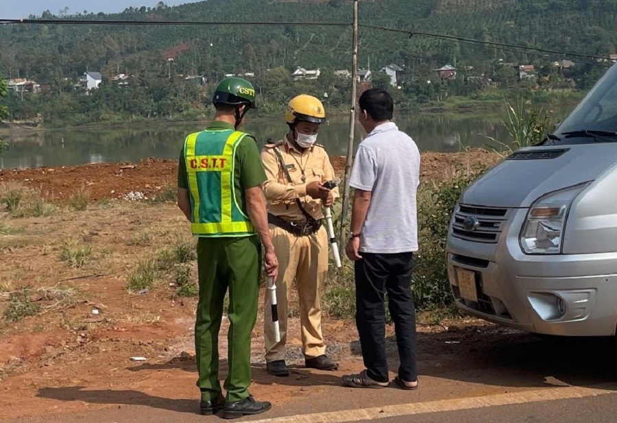 Công an xã Đắk Song phối hợp lực lượng Cảnh sát giao thông kiểm tra nồng độ cồn