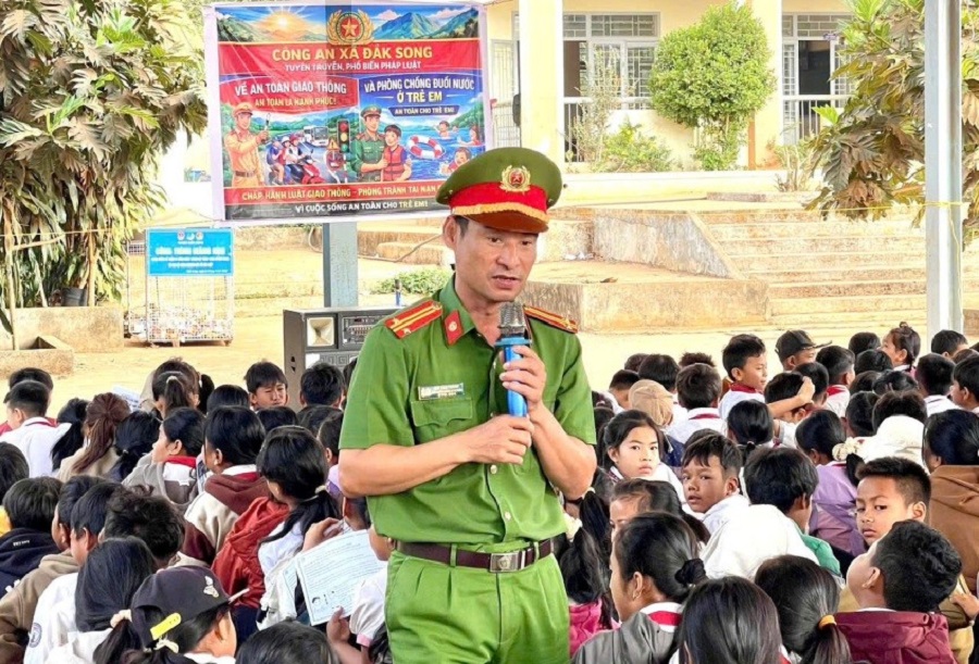 Tại buổi tuyên truyền, cán bộ Công an xã Đắk Song đã phổ biến các quy định cơ bản về trật tự an toàn giao thông, hướng dẫn học sinh đội mũ bảo hiểm đúng quy cách, đi đúng phần đường, làn đường, chấp hành tín hiệu đèn giao thông và không nô đùa khi tham gia giao thông. Đồng thời, các em được cảnh báo về những nguy cơ tai nạn giao thông thường gặp và hậu quả của việc vi phạm.