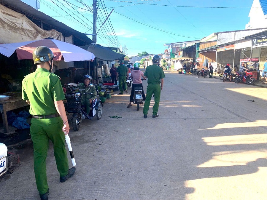 Lực lượng Công an xã tuyên truyền, nhắc nhở từ sáng sớm