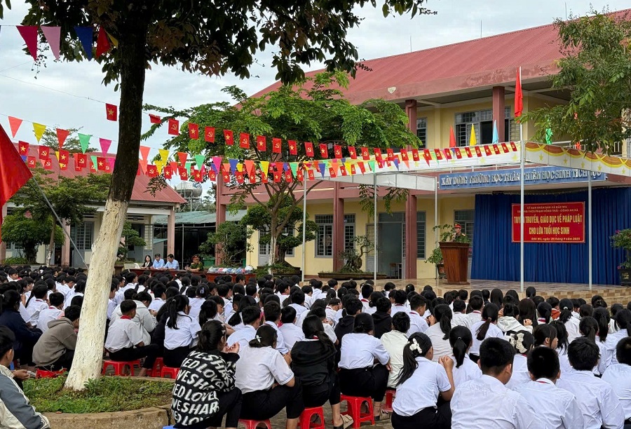 Công an xã Đắk Wil tuyên truyền tại Trường THCS Phạm Hồng Thái