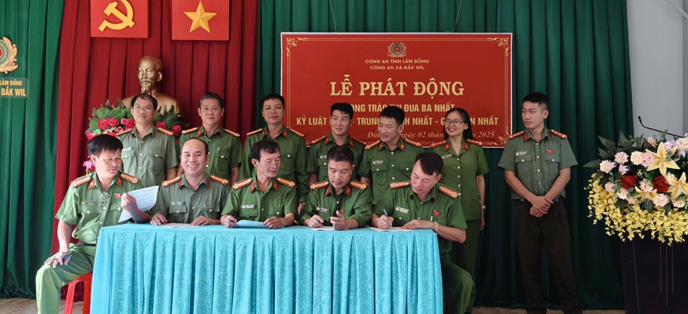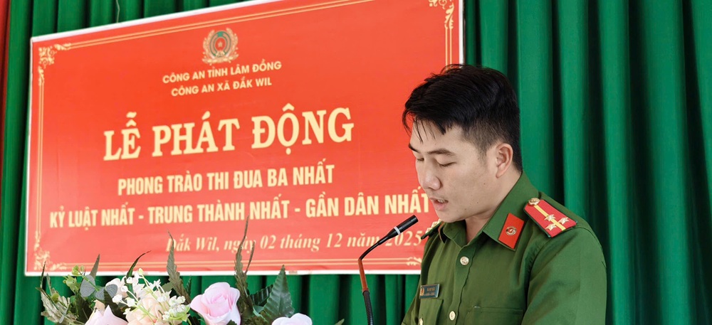 Đại diện cán bộ, chiến sĩ – đồng chí Thượng úy Hà Huy Hữu – bày tỏ niềm vinh dự, tự hào khi được tham gia phong trào; đồng thời thể hiện quyết tâm của tuổi trẻ Công an xã Đắk Wil trong việc phát huy tinh thần xung kích, sáng tạo, phấn đấu hoàn thành xuất sắc nhiệm vụ được giao.
