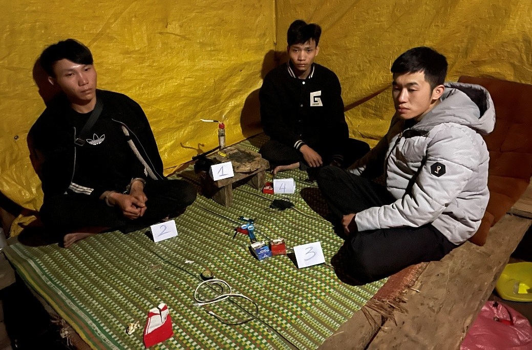 Ngay sau khi tiếp nhận tin báo, lực lượng Công an xã đã khẩn trương xác minh, theo dõi. Đến khoảng 21h00 cùng ngày, lực lượng Công an xã Đam Rông 1 đã bắt quả tang các đối tượng gồm: Đặng Sinh Dũng (SN 1999) thường trú tại thôn Păng Păh, xã Đam Rông 1; K’ Nam (SN 2003) thường trú tại thôn R’Hang Trụ, xã Phúc Thọ, tỉnh Lâm Đồng; Buôn Krong K’ Sơn (SN 2004) thường trú tại thôn R’Hang Trụ, xã Phúc Thọ, tỉnh Lâm Đồng khi đang tổ chức sử dụng trái phép chất ma túy tại chòi vườn cà phê của Dũng thuộc thôn Păng Păh.