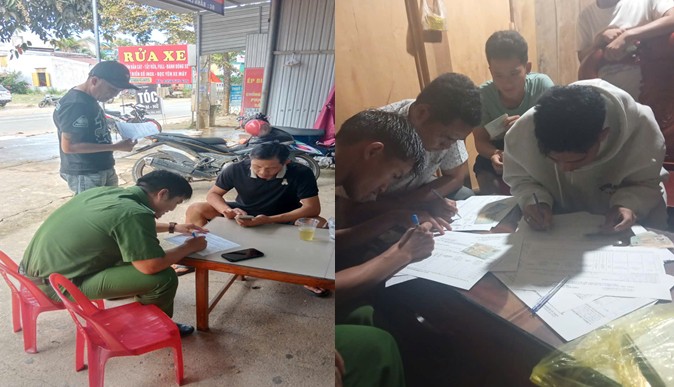 Công an xã đến từng hộ dân để rà soát, cập nhật dữ liệu phương tiện