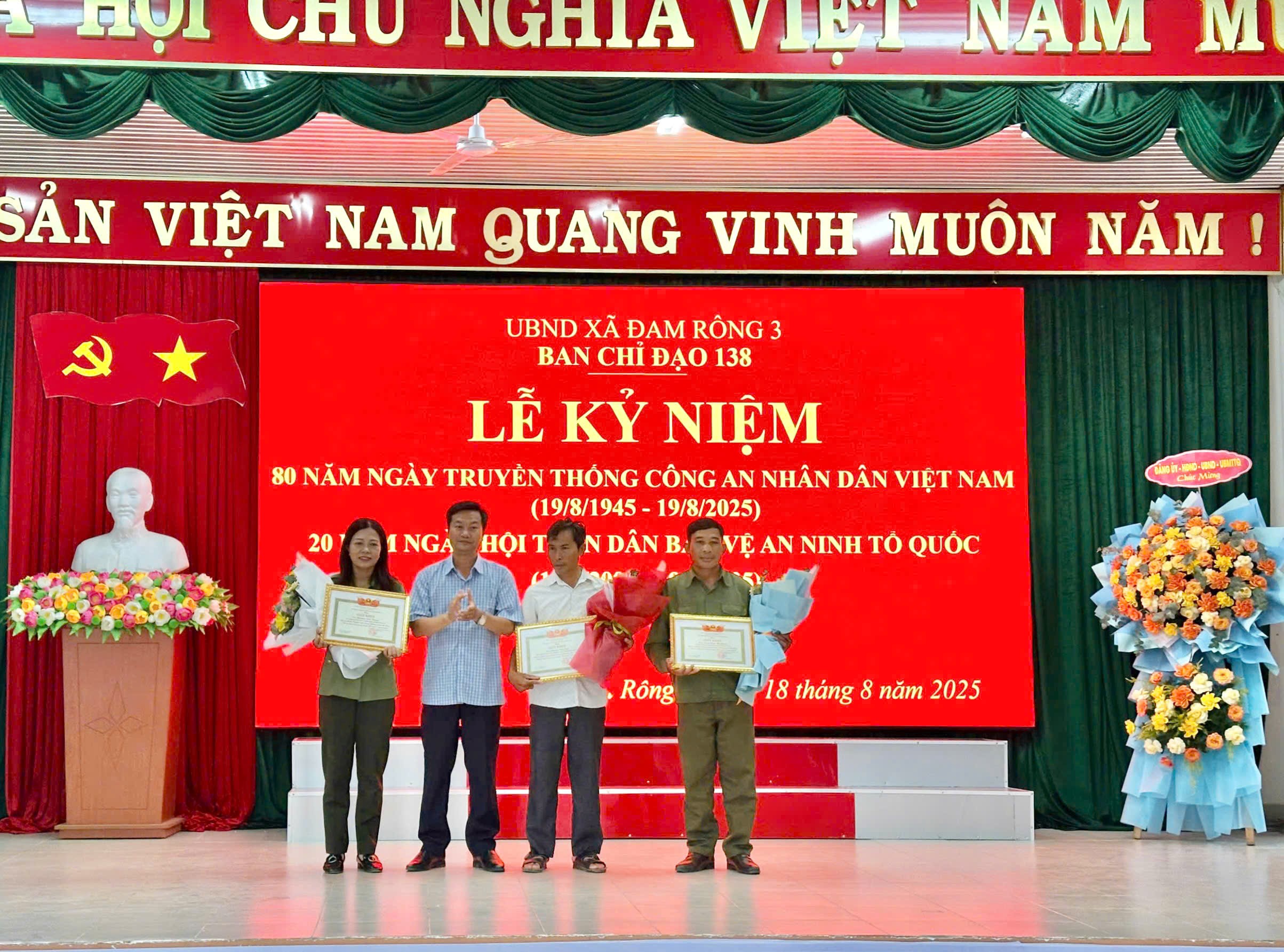 Phát biểu kết luận buổi lễ, Đồng chí Trần Đức Bắc – Phó Bí thư Đảng ủy, Chủ tịch UBND xã, Trưởng Ban Chỉ đạo 138 ghi nhận, biểu dương những kết quả bước đầu mà lực lượng Công an xã đạt được. Đồng thời, đồng chí nhấn mạnh: Trong thời gian tới, lực lượng Công an xã Đam Rông 3 cần tiếp tục đổi mới, nâng cao chất lượng công tác, phát huy vai trò nòng cốt trong bảo vệ an ninh quốc gia, giữ gìn trật tự an toàn xã hội, làm tốt vai trò tham mưu cho cấp ủy, chính quyền trong việc ổn định chính trị, thúc đẩy phát triển kinh tế - xã hội. Lực lượng công an chủ động triển khai phương án bảo vệ an ninh trật tự cho Đại hội Đảng bộ xã lần thứ I, nhiệm kỳ 2025 – 2030.