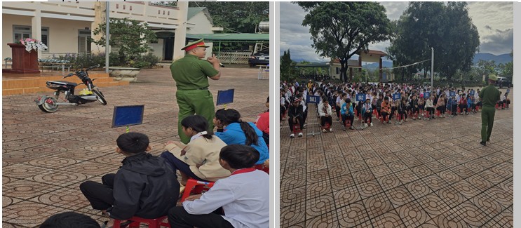Công an xã Đam Rông 3 tuyên truyền học sinh về Luật Giao thông đường bộ