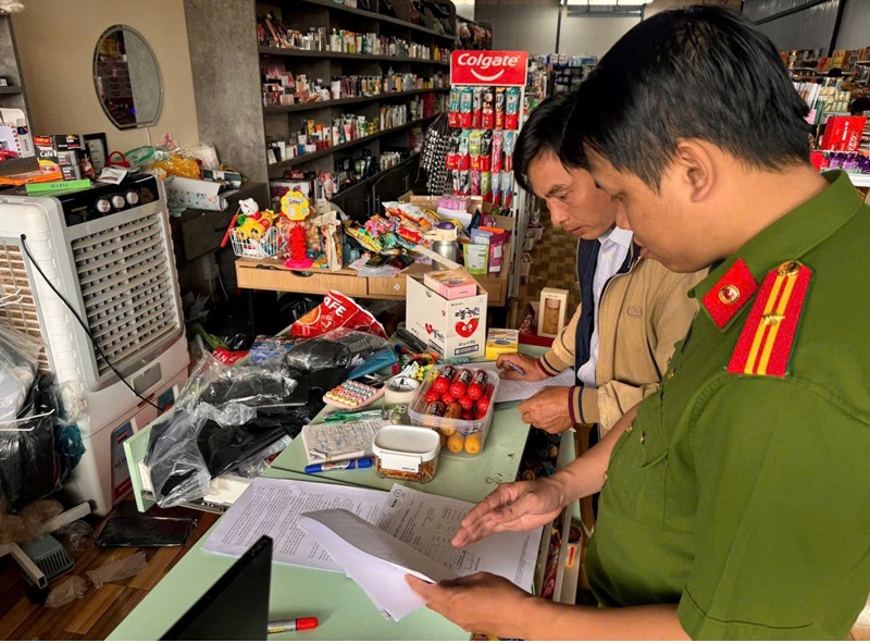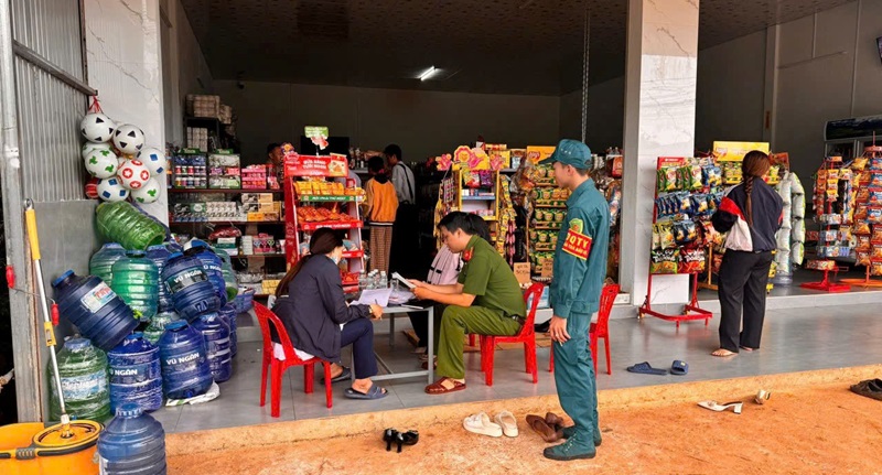 Công an xã Đinh Trang Thượng kiểm tra an toàn thực phẩm tại các cơ sở kinh doanh trên địa bàn xã