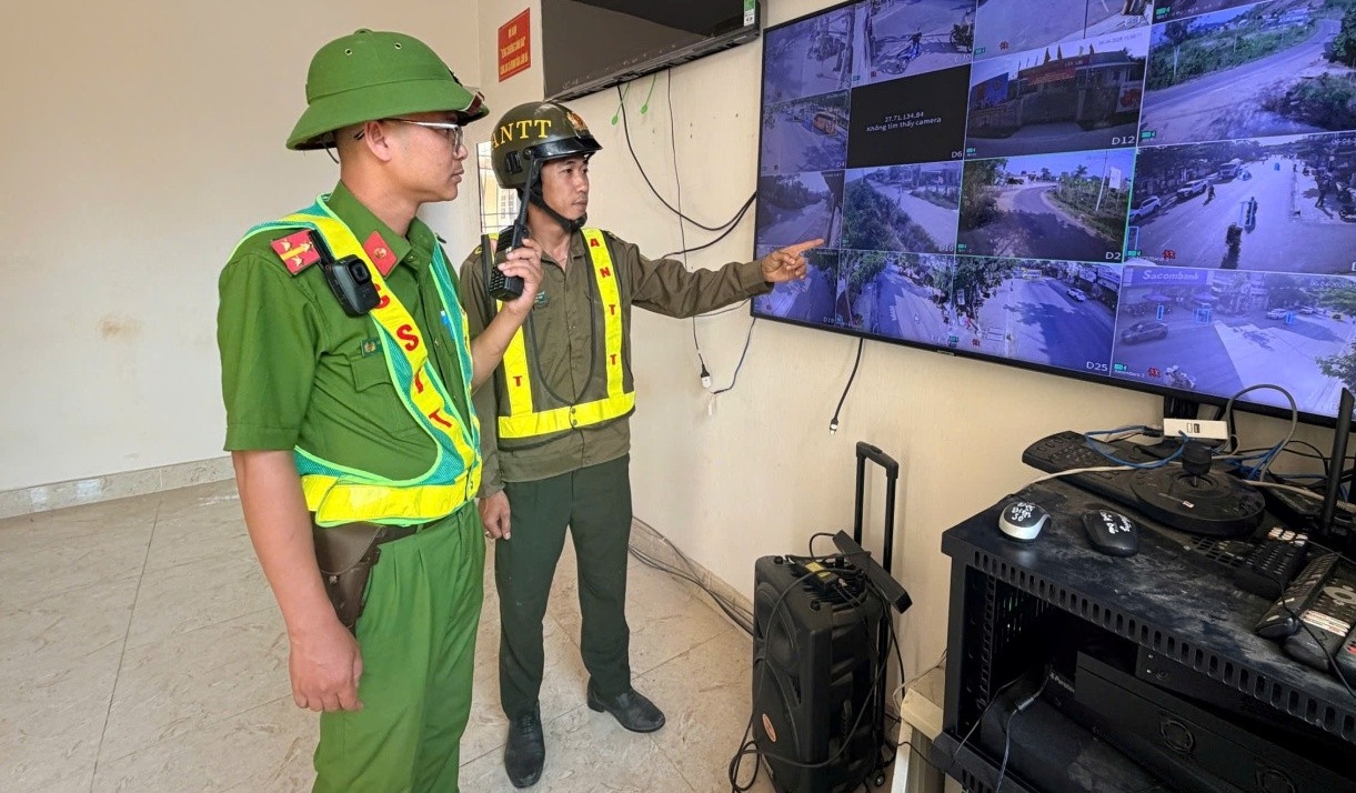 Công an xã tiến hành giám sát, đảm bảo ANTT thông qua Camera an ninh