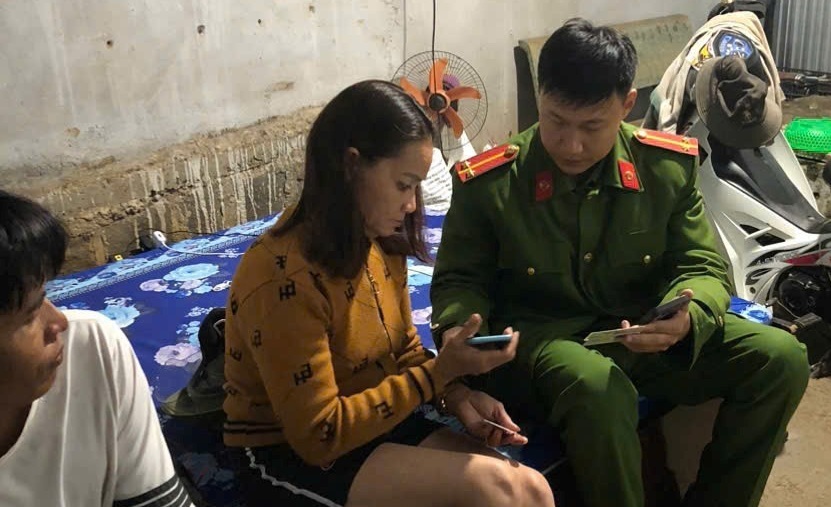 Cán bộ Cảnh sát khu vực Công an xã Đinh Văn Lâm Hà xuống địa bàn hướng dẫn người dân đăng ký lưu trú qua ứng dụng VNeID