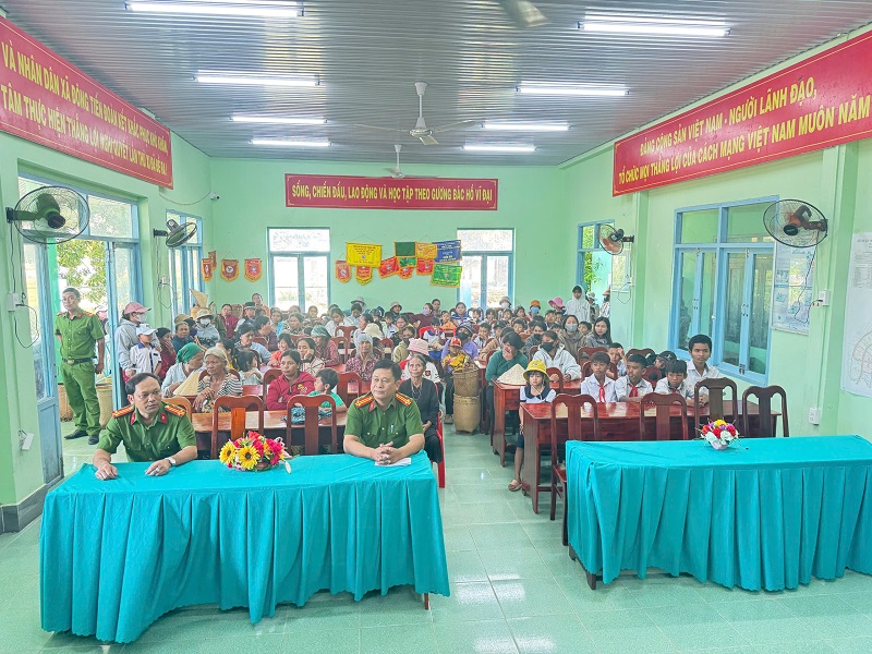 Song song với công tác tuyên truyền, Công an xã đã trao tặng 150 suất quà trị giá hơn 25 triệu đồng cho học sinh và các hộ gia đình có hoàn cảnh khó khăn. Những phần quà tuy không lớn về vật chất nhưng mang ý nghĩa thiết thực, thể hiện tình cảm, tinh thần sẻ chia và trách nhiệm của lực lượng Công an đối với đồng bào dân tộc thiểu số.