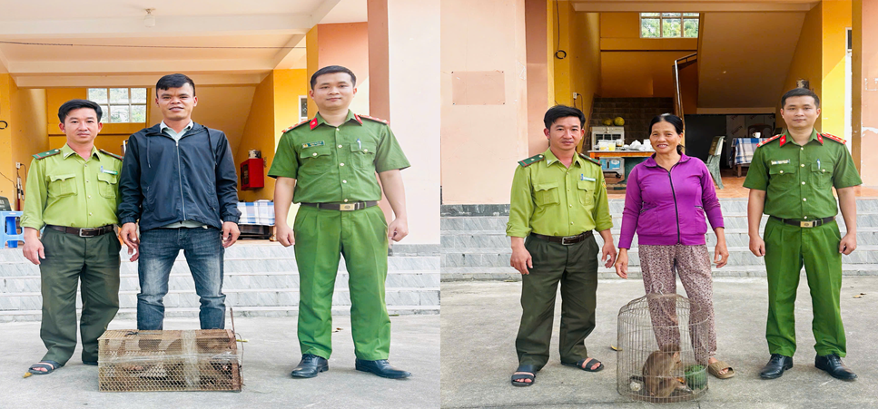 Qua công tác tuyên truyền, vận động, từ ngày 25/12/2025 đến nay, Công an xã Đồng Kho đã tiếp nhận 04 cá thể động vật hoang dã do người dân tự nguyện giao nộp. Gần đây nhất, Công an xã tiếp nhận 02 cá thể khỉ do anh Ngô Tiến Đạt (SN 1998) thường trú tại thôn Huy Khiêm 2, xã Đồng Kho và bà Hoàng Thị Vầm (SN 1962) thường trú tại thôn Đồng Kho 2, xã Đồng Kho mang đến giao nộp.