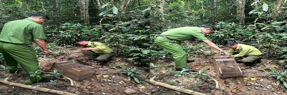 Công an xã Đồng Kho và Tổ Kiểm lâm địa bàn tiến hành thả hai cá thể khỉ về tự nhiên