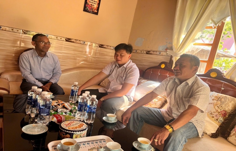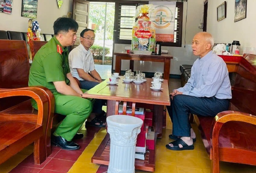 Đồng chí Trưởng Công an xã D’Ran tiếp xúc, tranh thủ Linh mục quản xứ Giáo xứ Diom