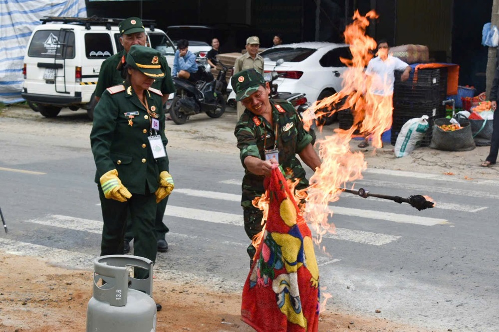Công an xã tập huấn kỹ năng chữa cháy cho hội viên Hội Cựu Chiến binh xã