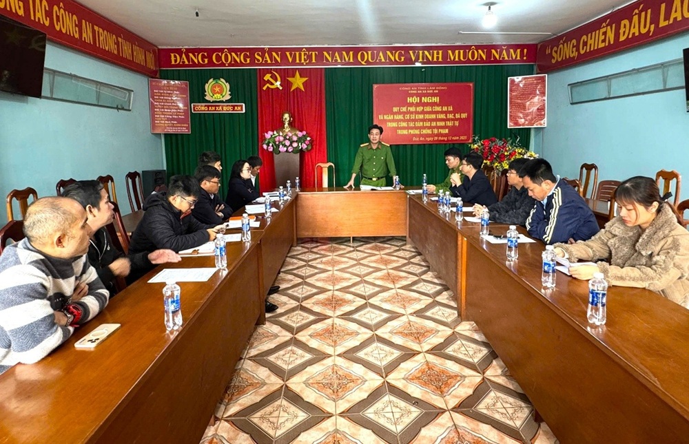 Tại Hội nghị, đồng chí Thiếu tá Trịnh Ngọc Tiến – Phó Trưởng Công an xã đã trao đổi thông tin về tình hình an ninh trật tự; phân tích phương thức, thủ đoạn hoạt động của các loại tội phạm thường xảy ra liên quan đến ngân hàng và các cơ sở kinh doanh vàng bạc, đá quý, như: cướp giật, trộm cắp tài sản, lừa đảo trên không gian mạng, gây rối trật tự công cộng…
