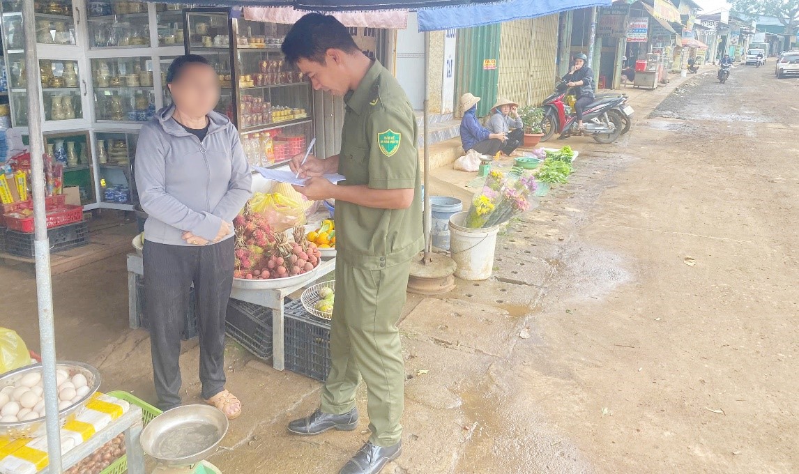 Trước thực trạng người dân tụ tập buôn bán hàng rong, dựng biển quảng cáo, bày hàng hóa dưới lòng, lề đường gây cản trở giao thông, ảnh hưởng mỹ quan và tiềm ẩn nguy cơ tai nạn, nhất là trên tuyến Quốc lộ 14 vào giờ cao điểm, Công an xã đã nhiều lần ra quân nhắc nhở, yêu cầu các trường hợp vi phạm ký cam kết không tái phạm. Đơn vị đặt biển “Cấm họp chợ” tại các điểm chợ tự phát, tăng cường tuần tra, đồng thời phối hợp các trường học triển khai mô hình “Cổng trường an toàn giao thông”, hướng dẫn phụ huynh đưa đón con đúng nơi quy định.