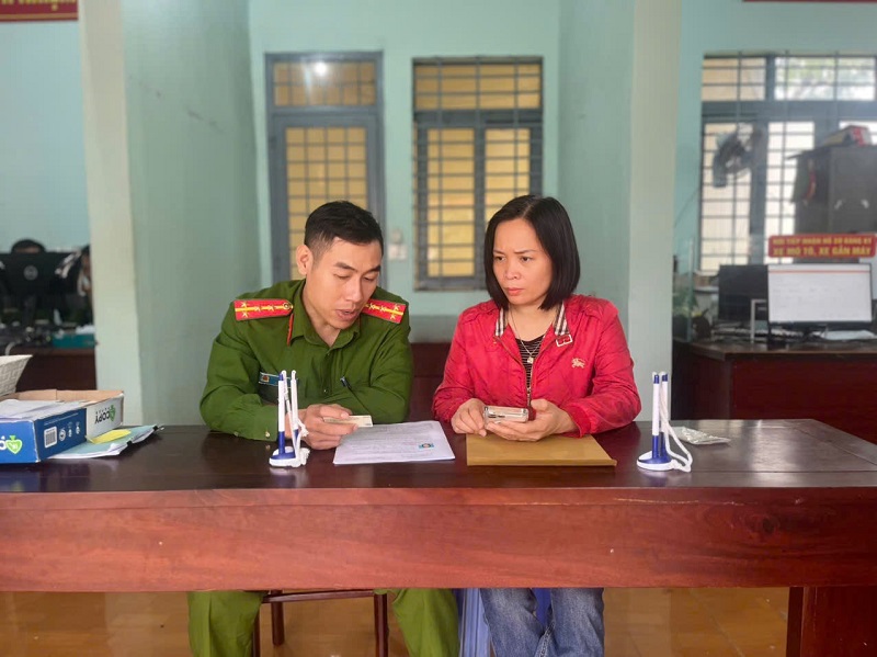Cán bộ công an xã trả kết quả Đăng ký phương tiện cho người dân