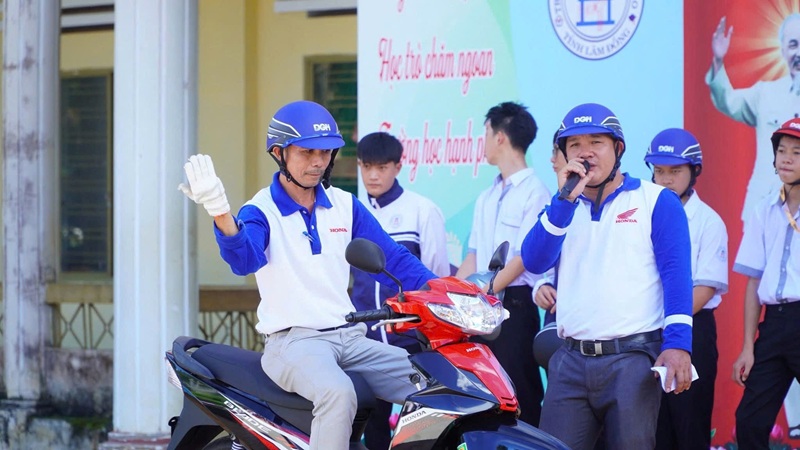 Song song với hoạt động tuyên truyền là phần hướng dẫn thực hành kỹ năng lái xe máy an toàn. Học sinh được hướng dẫn cách nhận biết và xử lý các tình huống nguy hiểm, tìm hiểu cấu tạo – chức năng cơ bản của xe, kiểm tra và bảo dưỡng xe; cách khởi động, tắt máy, sử dụng ga – phanh – số; tư thế ngồi an toàn; điều chỉnh tốc độ; dừng xe đúng kỹ thuật. Học sinh thực hành theo 04 hình mẫu gồm: đi theo hình số 8, đi qua vạch đường thẳng, đường có vật cản và đường gồ ghề…