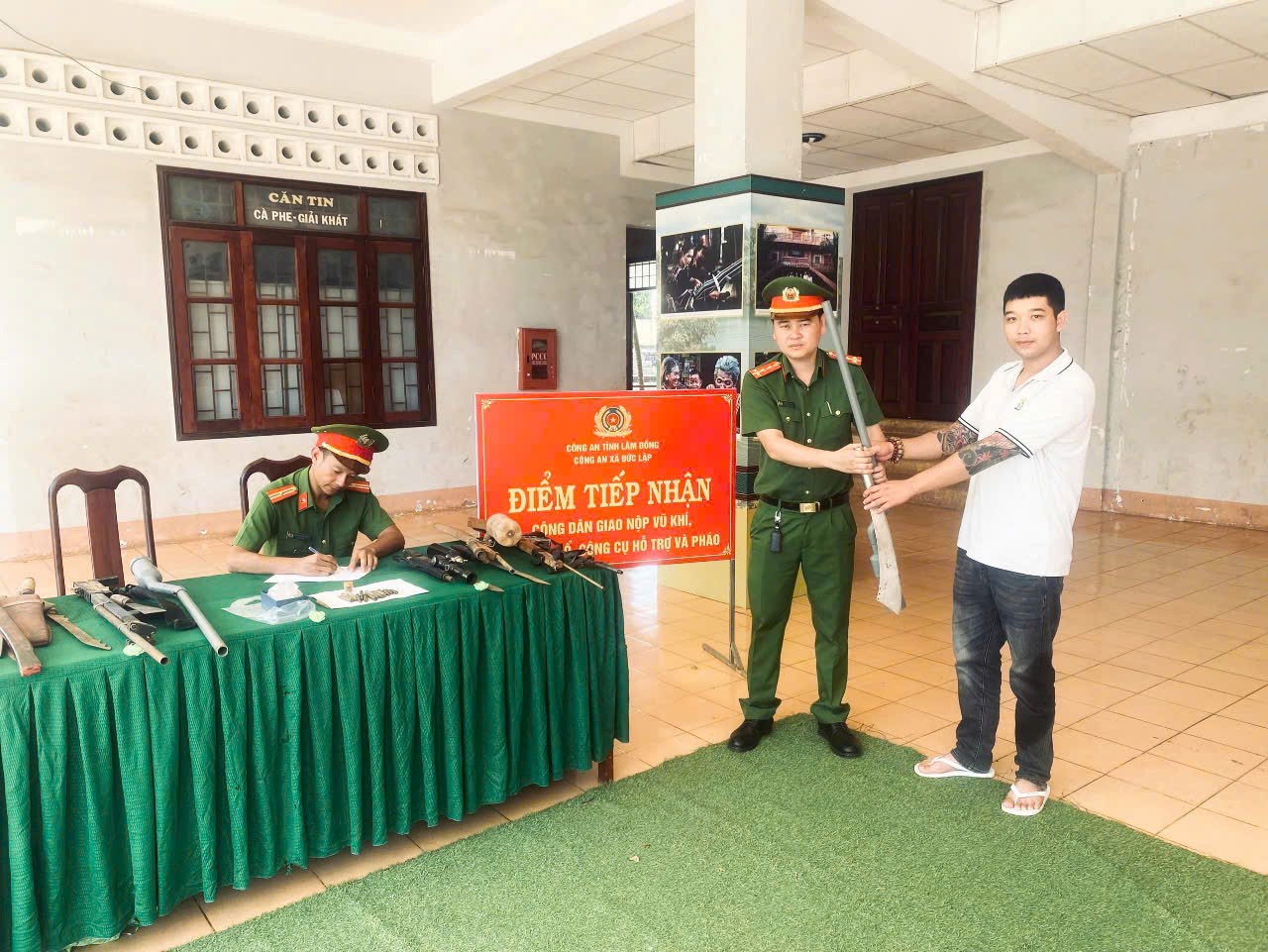 Xác định công tác vận động, thu gom vũ khí, vật liệu nổ, công cụ hỗ trợ có vai trò đặc biệt quan trọng trong đấu tranh, phòng ngừa các loại tội phạm trên địa bàn, Công an xã Đức Lập đã tăng cường công tác tuyên truyền, vận động người dân tự nguyện giao nộp, kết quả: Ngay tại buổi Lễ, Công an xã đã thu gom 05 súng tự chế, 15 viên đạn quân dụng, 09 vũ khí thô sơ do người dân tự giác giao nộp. Qua hoạt động này đã góp phần tạo sự chuyển biến về nhận thức, ý thức, trách nhiệm của nhân dân trong chấp hành nghiêm quy định của pháp luật về quản lý, sử dụng vũ khí, vật liệu nổ, công cụ hỗ trợ.