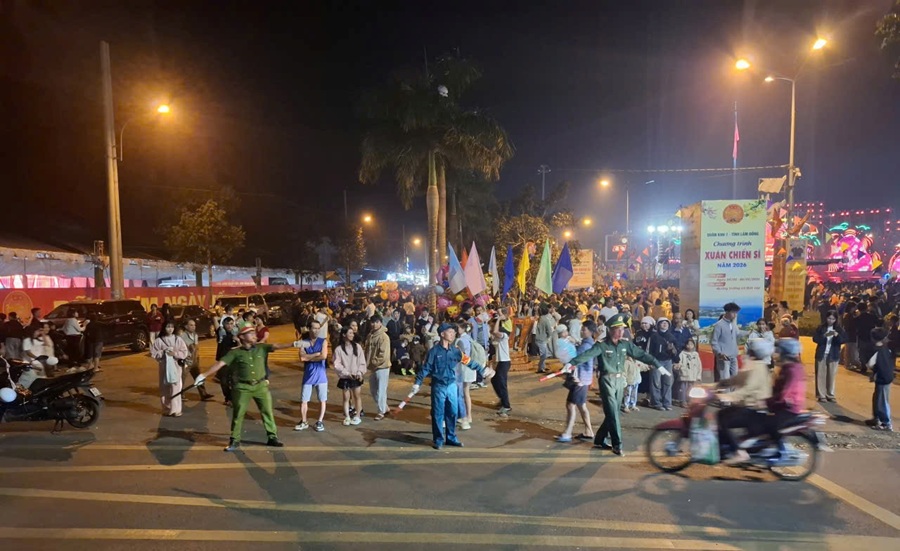 Trong hai ngày cao điểm, Công an xã Đức Lập thường trực 100% quân số để kịp thời xử lý các tình huống phát sinh. Đặc biệt, tối 06/02/2026, Công an xã đã lập 09 chốt quanh khu vực Quảng trường và địa điểm bắn pháo hoa, huy động hơn 40 lượt cán bộ, chiến sĩ và toàn bộ lực lượng an ninh cơ sở tham gia điều tiết giao thông, đảm bảo cho Nhân dân an tâm thưởng thức chương trình nghệ thuật và pháo hoa trong không khí vui tươi, an toàn.