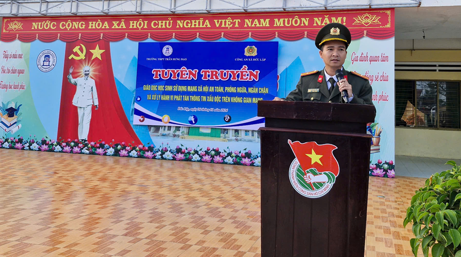 Sáng ngày 26/01/2026, Công an xã Đức Lập phối hợp với Trường THPT Trần Hưng Đạo tổ chức buổi tuyên truyền, giáo dục học sinh sử dụng mạng xã hội an toàn, lành mạnh, phòng ngừa, ngăn chặn và xử lý hành vi phát tán thông tin xấu độc trên không gian mạng. Buổi tuyên truyền có sự tham gia của 1.260 giáo viên và học sinh của nhà trường. Toàn cảnh buổi tuyên truyền Cán bộ Công an xã Đức Lập tuyên truyền nâng cao nhận thức cho học sinh tham gia mạng xã hội Buổi tuyên truyền không chỉ trang bị cho các em học sinh kiến thức cần thiết để tự bảo vệ mình trên không gian mạng mà còn góp phần xây dựng ý thức chủ động, trách nhiệm trong việc sử dụng công nghệ thông tin. Đây là một trong những giải pháp quan trọng nhằm nâng cao hiệu quả công tác phòng, chống tội phạm trong tình hình mới, đặc biệt là các loại tội phạm sử dụng không gian mạng để hoạt động. Lực lượng Công an sẽ tiếp tục phối hợp với nhà trường, gia đình và các tổ chức liên quan để đẩy mạnh công tác giáo dục, tuyên truyền pháp luật, góp phần hình thành thế hệ trẻ bản lĩnh, sống có trách nhiệm, tuân thủ pháp luật và thích ứng tích cực với sự phát triển của xã hội số. Công an xã Đức Lập