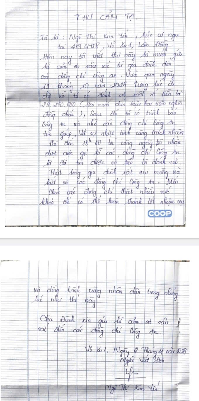 Thư cảm ơn của người dân gửi đến lực lượng Công an xã