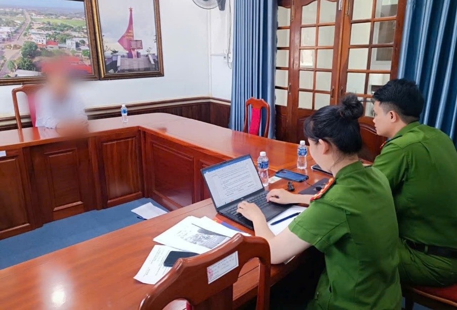 Công an xã Đức Linh làm việc với ông N.V.T
