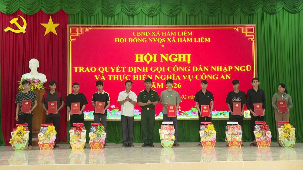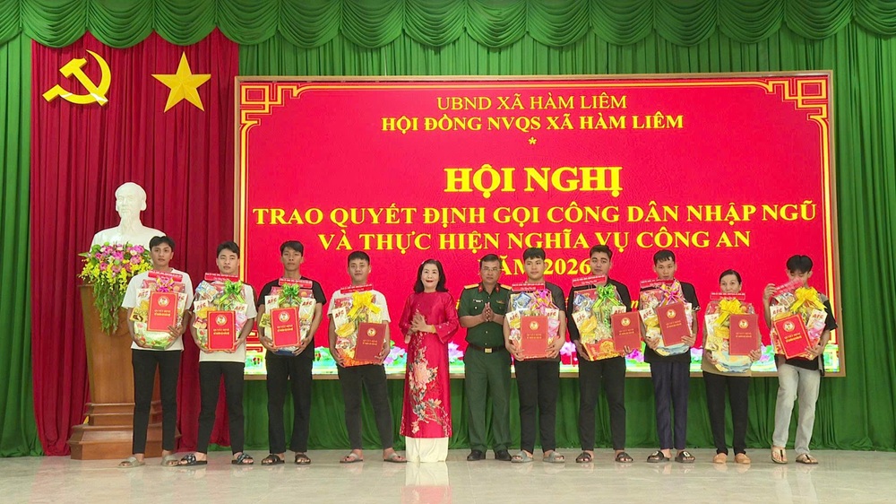 Đồng chí Nguyễn Thị Toàn Thắng – Bí thư Đảng ủy xã Hàm Liêm trao Quyết định gọi công dân nhập ngũ năm 2026