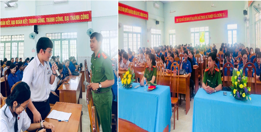 Trong chương trình, Tổ Cảnh sát trật tự Công an xã đã trình chiếu 02 video tuyên truyền về các hành vi vi phạm TTATGT thường gặp ở lứa tuổi thanh thiếu niên, như: điều khiển phương tiện khi chưa đủ tuổi, sử dụng rượu bia khi lái xe... Những hình ảnh thực tế này đã giúp các em nhận thức sâu sắc hơn về nguy cơ, hệ lụy của việc vi phạm. Bên cạnh đó, Ban tổ chức còn tổ chức phần giao lưu hỏi – đáp kiến thức pháp luật giao thông với nhiều phần quà khích lệ, tạo không khí sôi nổi, hào hứng, giúp buổi tuyên truyền đạt hiệu quả thiết thực.