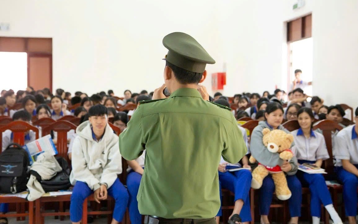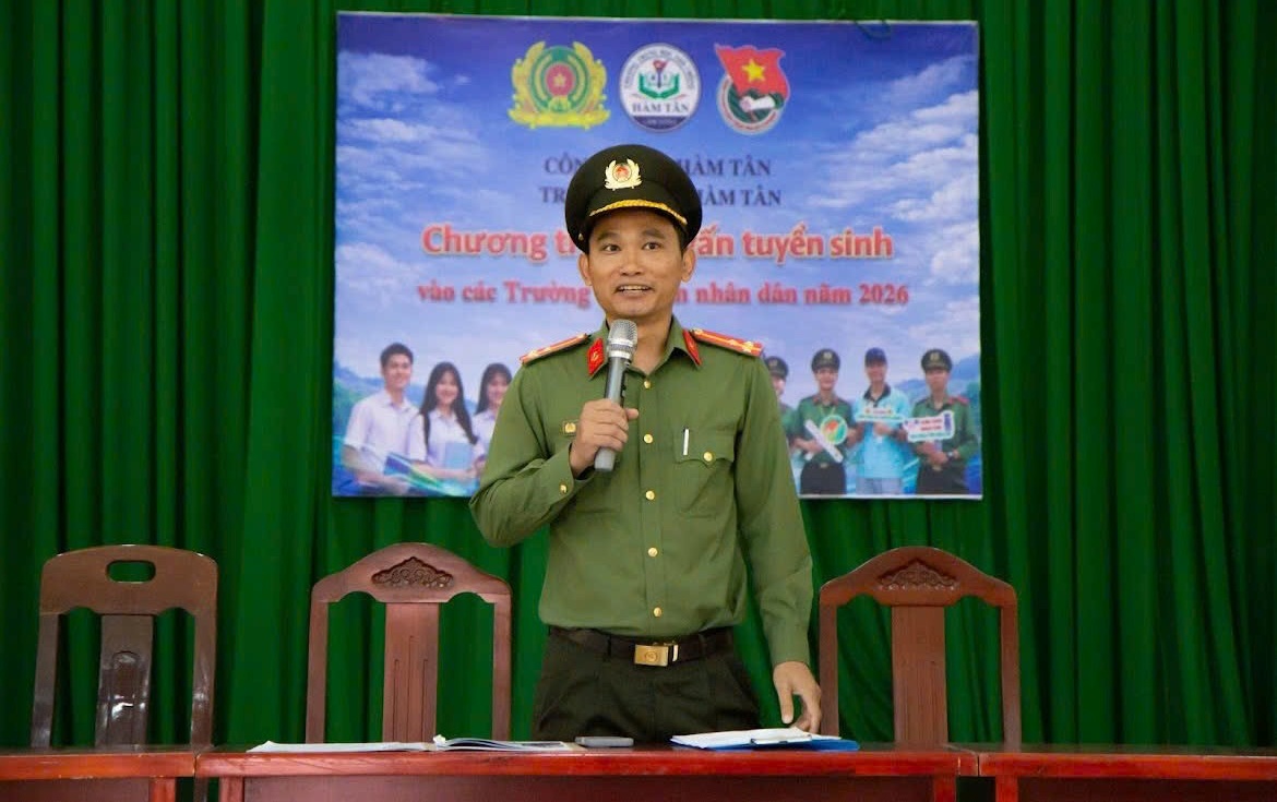 Tổ tư vấn Công an xã tuyên truyền tuyển sinh vào các trường Công an nhân dân năm 2026 cho các em học sinh lớp 11, 12 Trường THPT Hàm Tân