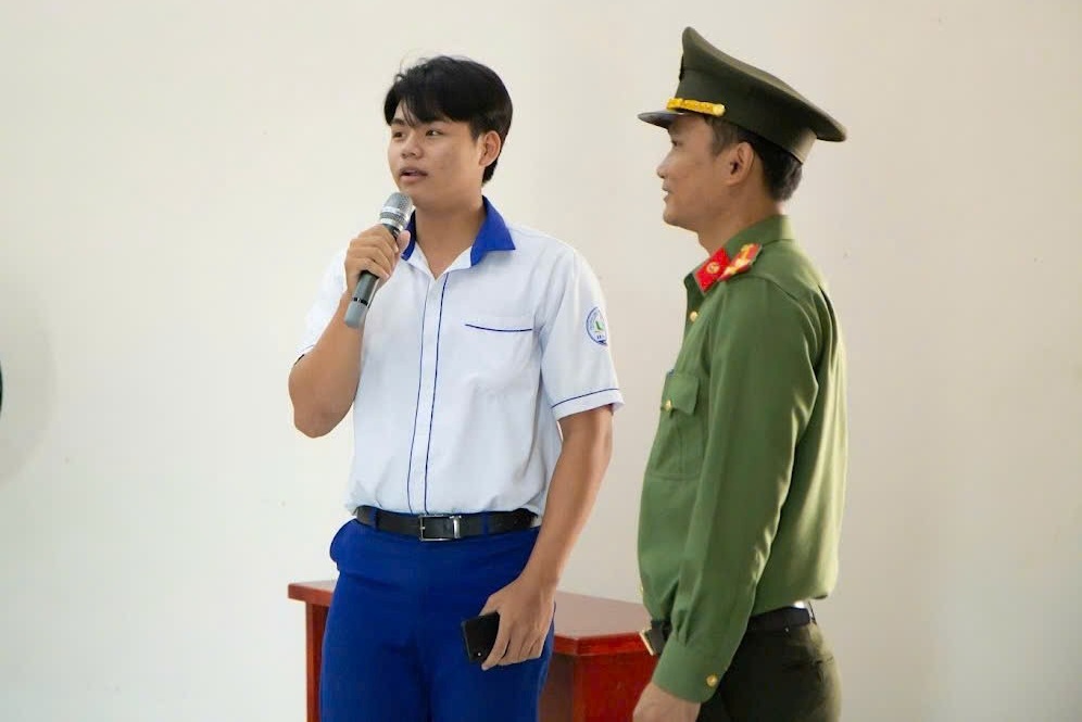Các bạn học sinh Trường THPT Hàm Tân đặt câu hỏi với Tổ tư vấn Công an xã