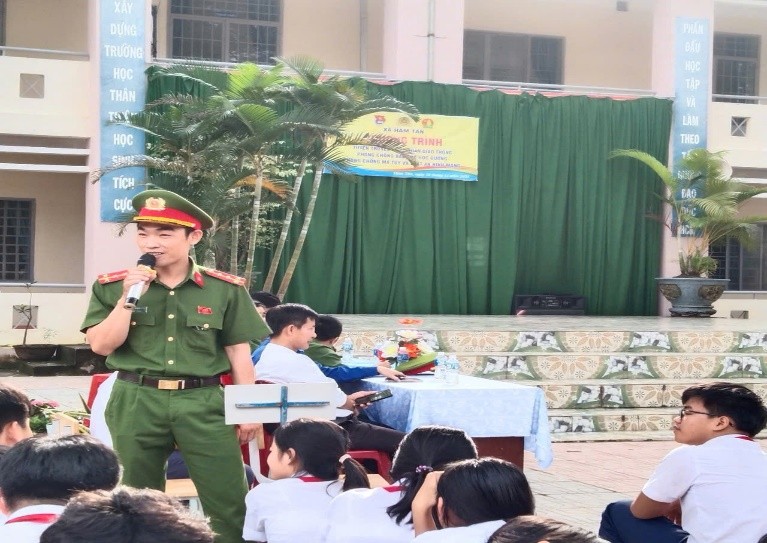 Song song với hoạt động trực tiếp, Công an xã Hàm Tân còn tăng cường tuyên truyền qua hệ thống truyền thanh, cổng thông tin điện tử, các trang mạng xã hội như Facebook, Zalo (Tuổi trẻ Công an Hàm Tân, Tuổi trẻ Hàm Tân...). Chuyên mục “Câu chuyện cảnh giác” được duy trì thường xuyên với khoảng 15 tin, bài, video cảnh báo các chiêu trò lừa đảo phổ biến như: giả danh phạt nguội, giả danh cơ quan điều tra, “việc nhẹ lương cao”, “bắt cóc online”… thu hút gần 4.000 lượt tương tác trên mạng xã hội.