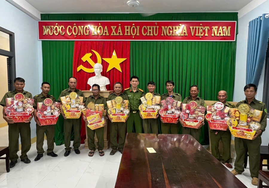 Đại diện Chỉ huy Công an xã thăm, tặng quà lực lượng an ninh trật tự ở cơ sở