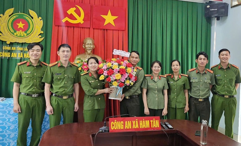 Sau chương trình, tập thể Chi ủy, lãnh đạo đơn vị đã tặng hoa chúc mừng Ban Chấp hành Chi đoàn Công an xã; đồng thời tổ chức thăm, chúc mừng Thường trực Đoàn Thanh niên xã Hàm Tân và Đoàn Thanh niên Trường THPT Hàm Tân nhân dịp kỷ niệm 95 năm Ngày thành lập Đoàn TNCS Hồ Chí Minh.