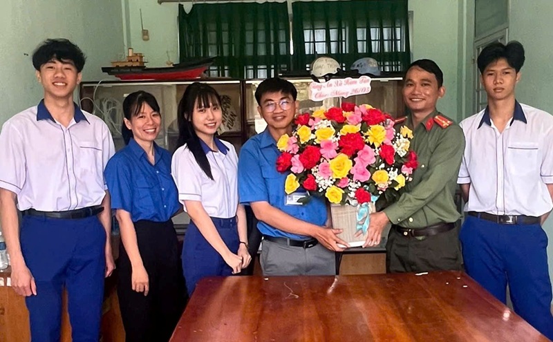 Công an xã thăm, tặng hoa chúc mừng Thường trực Đoàn Thanh niên xã Hàm Tân và Đoàn Thanh niên Trường THPT Hàm Tân nhân kỷ niệm 95 năm Ngày thành lập Đoàn TNCS Hồ Chí Minh