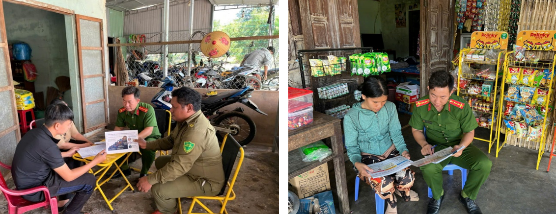 Bên cạnh việc tăng cường tuyên truyền lưu động, phát tờ rơi, đăng tải thông tin trên các trang Zalo, Facebook, Công an xã còn lồng ghép tuyên truyền pháp luật tại các cuộc họp thôn, sinh hoạt chi bộ định kỳ; tổ chức đến từng hộ gia đình, cơ sở kinh doanh để tuyên truyền, vận động và cho ký cam kết, qua đó góp phần nâng cao nhận thức, ý thức chấp hành pháp luật của Nhân dân trên địa bàn.