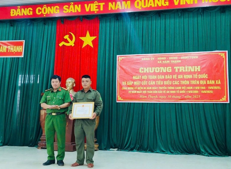Ông Nguyễn Quốc Duy – Tổ trưởng Tổ bảo vệ ANTT thôn Mỹ Thạnh 1, xã Hàm Thạnh vinh dự nhận Giấy khen Giám đốc Công an tỉnh vì có thành tích trong sơ kết 01 năm triển khai lực lượng tham gia bảo vệ ANTT ở cơ sở và tổng kết phong trào đặc biệt trong lực lượng tham gia bảo vệ ANTT ở cơ sở.