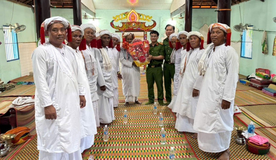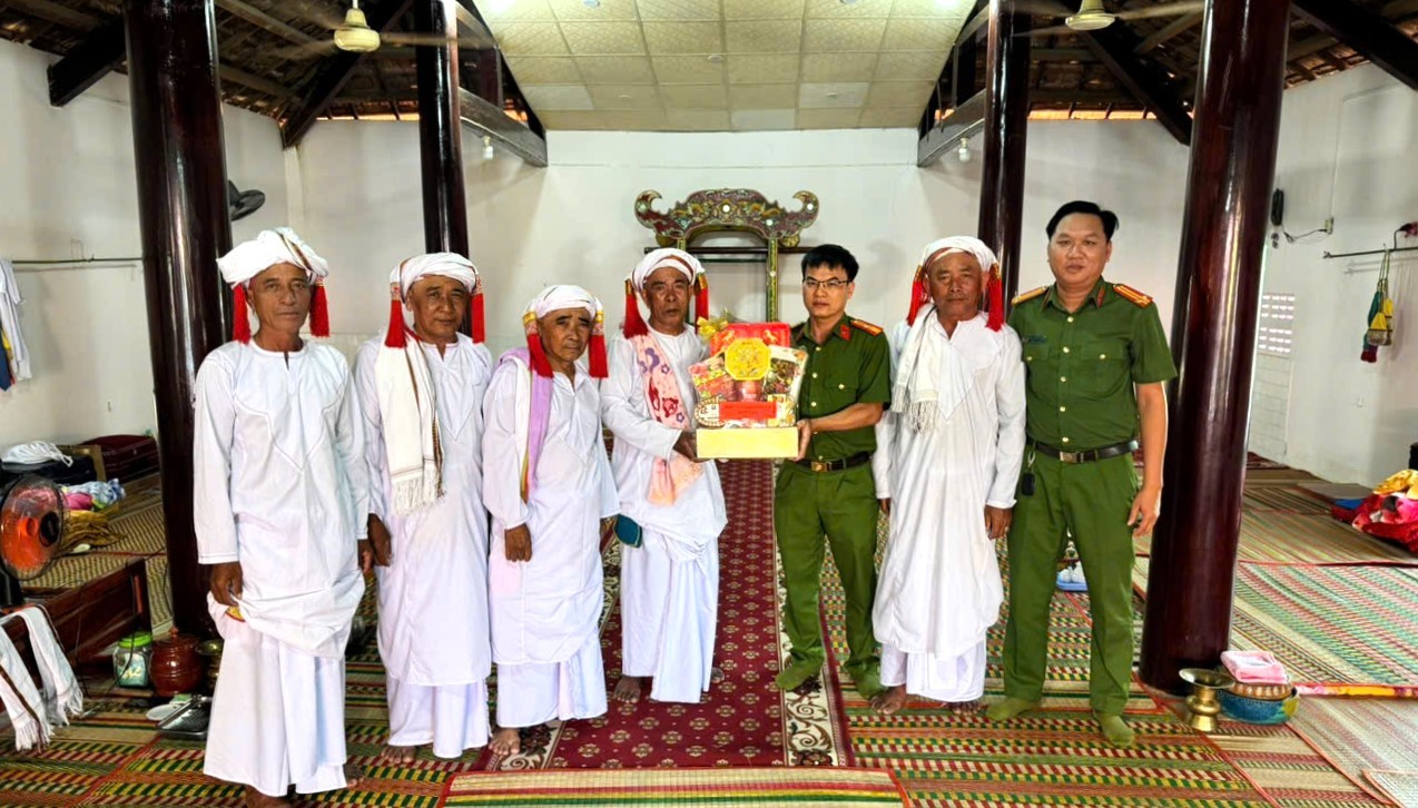 Tại các điểm đến, cán bộ, chiến sĩ Công an xã đã ân cần thăm hỏi sức khỏe các vị chức sắc, chức việc, người có uy tín cùng bà con trong cộng đồng; gửi lời chúc năm mới an lành, hạnh phúc, đón Tết Ra Mư Wan trang nghiêm, trọn vẹn đến toàn thể đồng bào theo đạo Hồi giáo Bà Ni trên địa bàn.