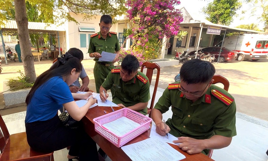 Cán bộ, chiến sĩ Công an xã Hàm Thuận Bắc đăng ký hiến máu tình nguyện