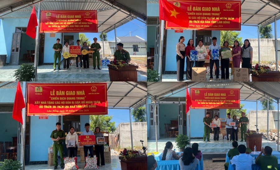 Cũng trong ngày 09/01/2026, Công an xã Hàm Thuận Bắc phối hợp với Phòng Cảnh sát kinh tế, Phòng An ninh điều tra Công an tỉnh tổ chức lễ bàn giao nhà cho hộ ông Thái Minh Thoại ở thôn Phú Thái và hộ ông Phạm Văn Tưng ở thôn Dân Trí, xã Hàm Thuận Bắc. Đến nay, trên địa bàn xã Hàm Thuận Bắc đã hoàn thành vượt tiến độ 04/04 căn nhà trong khuôn khổ “Chiến dịch Quang Trung”.