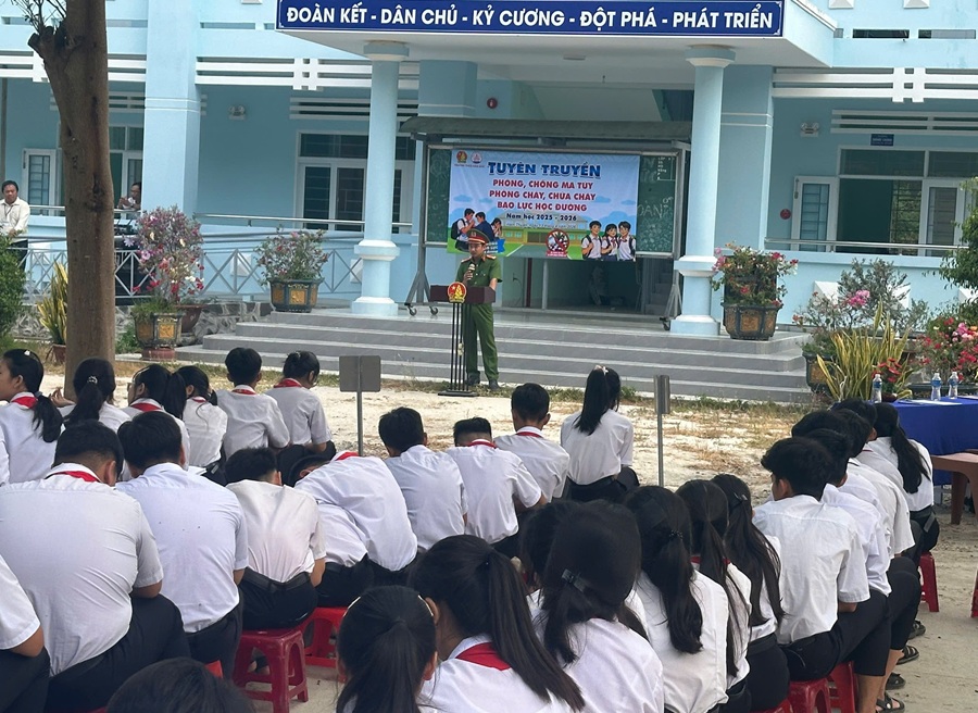 Ngày 13/4/2026, Công an xã Hàm Thuận phối hợp với Ban Giám hiệu Trường THCS Hàm Đức tổ chức 02 buổi tuyên truyền cho 69 cán bộ, giáo viên, nhân viên và 1.353 học sinh. Nội dung tập trung vào nhận diện các loại ma túy phổ biến, đặc biệt là ma túy tổng hợp, thuốc lá điện tử trá hình; tác hại của ma túy đối với sức khỏe, tương lai của học sinh; các quy định pháp luật liên quan.